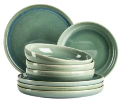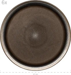 Tafelservice Palazzo 12tlg. – Weiß MitNachbildung-Kreisen In Grau Und Dunkelrot – Für 6 Personen