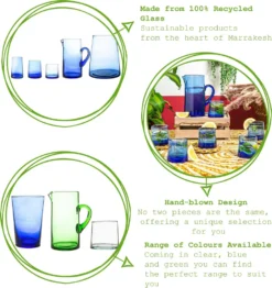 Nicola Spring 6 Stück Merzouga Recycled Longdrinkgläser Set – Trinkglas – 320ml – Blau