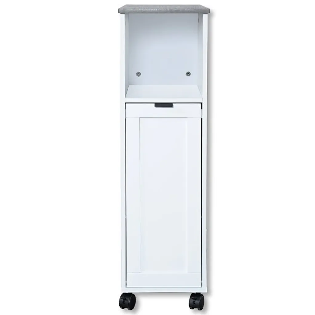 Das Nischenregal verfügt außerdem über einen praktischen Mülleimer, der unauffällig hinter einer Klappe versteckt ist.