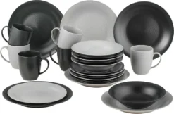 Das Kombiservice besteht aus je 4 Kaffeebechern, Desserttellern, Speisetellern und Schalen. In harmonischen Naturtönen setzt das Geschirr-Set Ihr Gericht schön in Szene. Es wurde aus Steingut gefertigt und kann problemlos in die Spülmaschine sowie in die Mikrowelle gegeben werden.