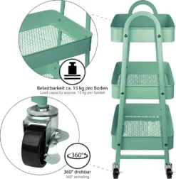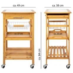 Moderner Bar-Rollwagen Barwagen LEVEN Schwarz + Eiche-Look Regalböden