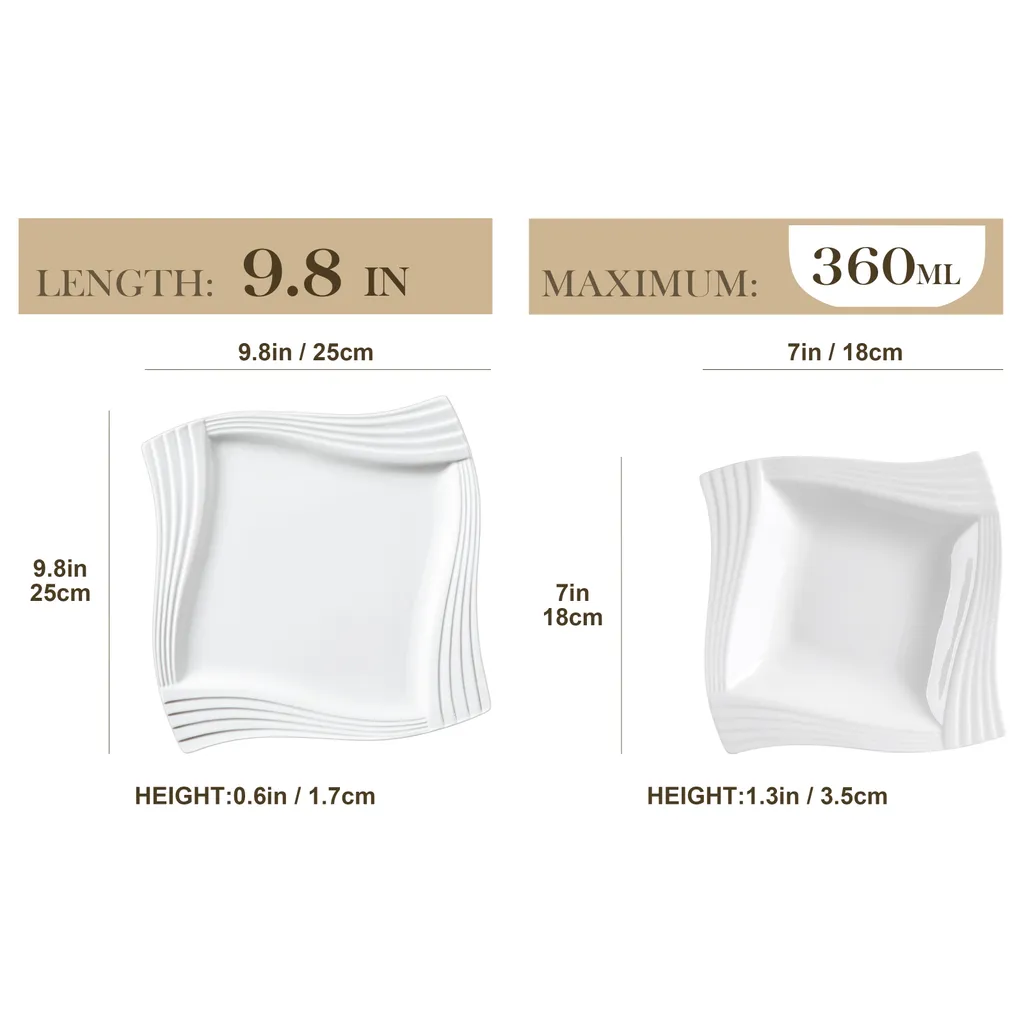 - EINHALTUNG DER TRADITIONELLEN HÖCHSTEN HANDWERKSKUNST | Hochwertige Porzellanselektion, einzigartige und künstlerische Verglasungstechnologie sowie ein präzise kontrollierter Temperaturbrand sorgen dafür, dass jeder Teller leicht und dünn aussieht und im tatsächlichen Gebrauch langlebig ist. Beinhaltet 6 x Speiseteller [25 x 25 x 1,7 cm] und 6 x Suppenteller [18 x 18 x 3,5 cm].