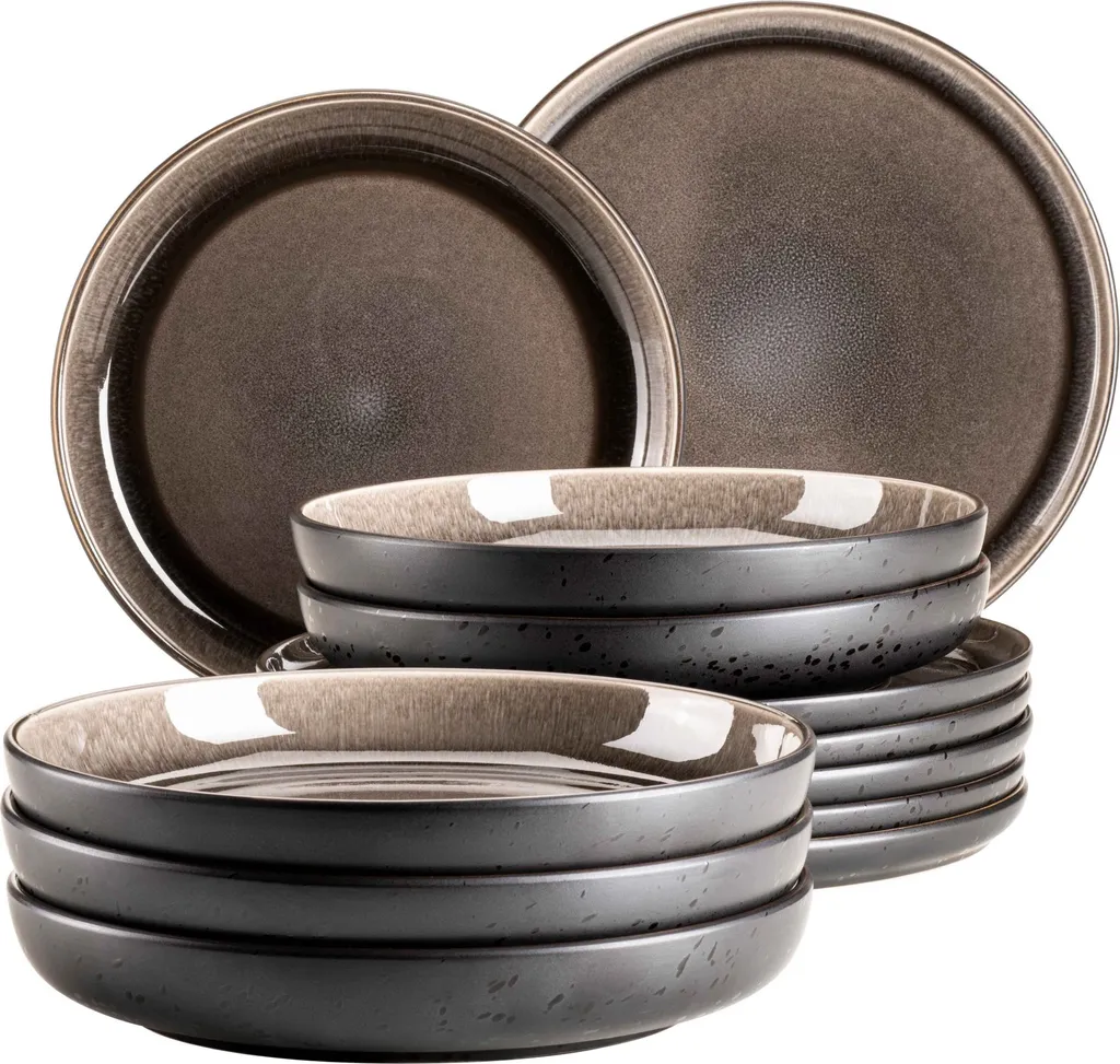 Die unvergleichliche Keramikgeschirr-Serie „Niara“ der österreichischen Traditionsmarke Mäser verbindet auf einzigartige Weise selbstbewusste skandinavische Formen mit zwei unterschiedlichen, aufwändigen Glasurtechniken: Auf den Ober- bzw. Innenseiten der Geschirrteile fließen strahlende Farbschattierungen auf schwarzem Untergrund zu wunderbaren Maserungen zusammen. Die Außen- bzw. Unterseiten hingegen bestechen durch eine Mattglasur in Schwarz, welche mit glänzenden schwarzen Sprenkeln überzogen wurde. Durch die händisch aufgetragenen Farben ist jedes Teil in dieser Kollektion auf allen Seiten einzigartig gemustert. Mit ihrem exquisiten und individuellen Charakter ist die Kollektion „Niara“ ein echter Hingucker auf jedem Esstisch. Gefertigt aus langlebigem, hochwertigem Steinzeug (welches nicht mit dem deutlich brüchigeren Steingut zu verwechseln ist) wird Ihnen dieses Geschirrset lange Freude bereiten. Selbstverständlich ist die gesamte Serie „Niara“ mikrowellen- und spülmaschinengeeignet. Bitte beachten Sie: Diese Kollektion wird händisch lasiert, wodurch minimale Unebenheiten der Glasur, kleine Einschlüsse und leichte Farbabweichungen auftreten können. Zur besseren objektiven Vergleichbarkeit gehen unsere Füllmengenangaben von einer randvollen Befüllung aus.