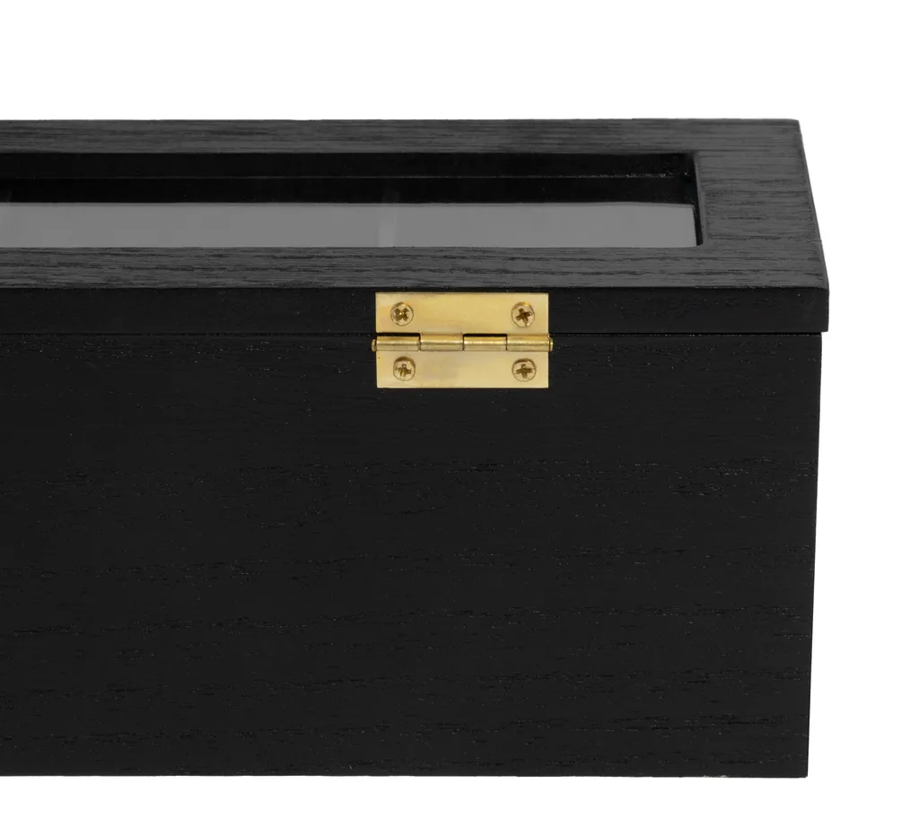 Theedoos Hout Zwart 6-Vakken – Glazen Deksel