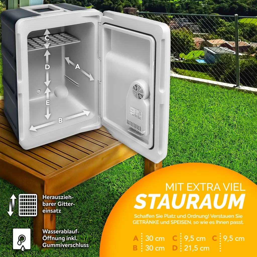 Mit unsere tillvex Elektro-Kühlbox bieten wir Ihnen einen idealen Begleiter zum Campen, Picknick, für den Urlaub oder den Ausflug zum Badesee.