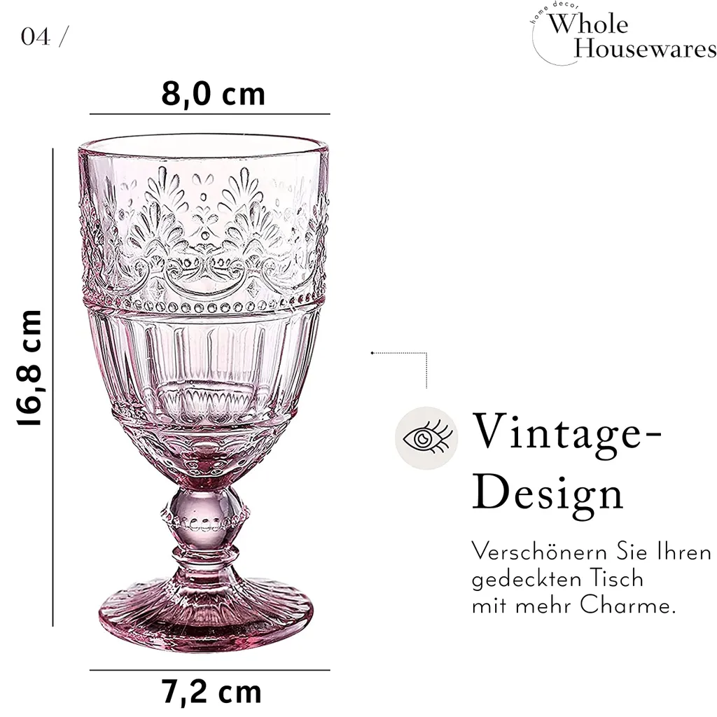 - VINTAGE: Unsere 340 ml Getränkegeschirr-Sets im Vintage-Design sind perfekt für alle Anlässe. Wunderschön gestaltete Mosaikbecher mit Vintage-Finish. Rosa Glaswaren für alle Haushalte!